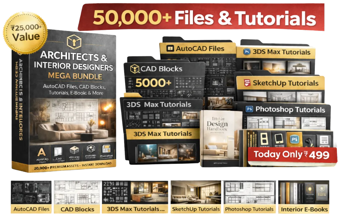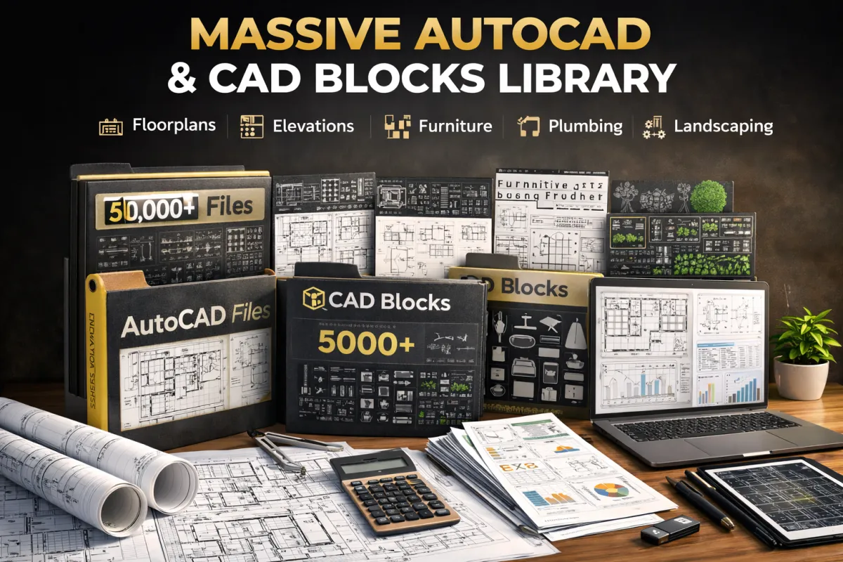 The Ultimate Architecture & Interior Design Mega Bundle gives you instant access to a massive, curated resource library: thousands of AutoCAD files, CAD blocks, design plans, 3D tutorials, engineering data, and professional learning materials – all organized and ready to use.